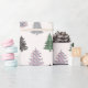 Christmas trees pattern with each of the individual tree having its own plaid or lined pattern. Fun and unique wrapping paper design for the Christmas season.