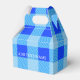 Blue plaid print pattern. Minimalist design. Custom favour boxes. Edit text to customise.