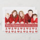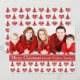 Flat holiday photo card with festive red banner and decorated with craft checked red Christmas trees and hearts pattern. Customise with your own photo and text. Click "customise it!" to reposition or resize your photo if required.