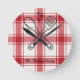 I ordered a small size of Tea Time Green & White Kitchen clock. It's just so cute and matches my kitchen decor!! The picture quality is better than I thought considering most of online orders do not meet buyers' expectations. It weighs only less than a pound. Excellent printing. You are not going to be embarrassed when you give this to your family and friends for a gift. I have failed many times on online orders for poor quality once i received them, but this one surprised me!!