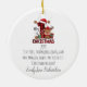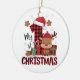 Celebrate a baby's first Christmas with this heartwarming design featuring a cheerful reindeer in a Santa hat, nestled among gifts, gingerbread cookies, and snowflakes. The bold plaid “1” and festive lettering create a joyful holiday scene. On the reverse side, a smaller version of the image is paired with the sweet saying: "Tiny toes, twinkling lights, and one magical night—my very first Christmas delight!" Personalized with the child’s name and year, this keepsake captures the magic of a once-in-a-lifetime moment with charm and cheer.