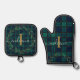 Plaid Script Monogram Botanical Wreath Tartan Oven Mitt & Pot Holder Set