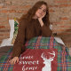 Cute home sweet home Christmas blanket you can easily customise by clicking the "Personalise" button, Featuring deer silhouette and clan MacCulloch tartan in green red chequered pattern. Perfect for your cosy nights in during the holidays. Makes a great housewarming gift