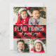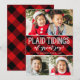 This fun photo holiday card features three photo templates, buffalo plaid, and a creative play on words - "Plaid tidings of great joy!"