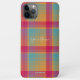 Lightweight, slim design cell phone case in a melon, raspberry and aqua plaid, by HAMbWG R2