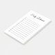 Plain and simple to do list personalised note pad with name. Casual script name header with 12 task lines with check boxes. Black text on a white background.