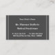 This basic and plain business card design features a first and last name, a business or clinic name, a professional title, and contact info that are customisable. Business cards such as these might be used by a professional such as a family doctor, a dentist, or a physician.