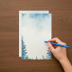 This pretty note paper features a charming hand painted watercolor illustration of snow-dusted pine trees standing tall against a soft blue winter sky. The delicate snowflakes and frosty blue evergreens create a serene, peaceful winter woodland scene. Perfect for letter writing, to do lists, and seasonal notes, this design brings a calm, rustic charm to your holiday correspondence.