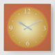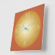 A plain colourful big face clock in burnt orange and gold.This clock has big numerals suitable for any person plus the vision impaired. A special occasion gift for any person.