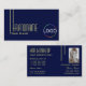 Plain Dark Indigo Blue with Logo and Photo Stylish Business Card