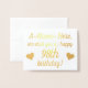This loving gold foil birthday greeting card design features a message like "A-Name-Here, we wish you a happy 98th birthday!" on the front, where the name and birthday number can be personalised. The inside features a birthday message that can be customised. A birthday card like this could be given to somebody celebrating a birthday.