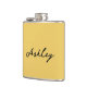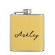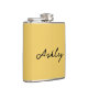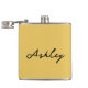 The flask itself is fine. It’s a cheap flask, obviously bought in bulk, however am prepared to overlook that. Given that it is a personalized item, I would have liked to have seen gift boxing instead of the generic packaging. Terrible printing, and/or quality. It’s a cheap, tacky vinyl. It is not cut straight and is also applied in a way that it is overhanging the bottom, causing the glue to catch on items and it will eventually roll and tear, damaging the wrap.