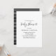 Simple gender neutral baby shower invitations featuring a plain white background, and a modern black baby shower party template that is easy to personalise.