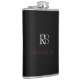 Plain Modern Black Red Monogrammed Initials Name Hip Flask