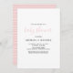 Simple girl baby shower invitations featuring a plain white background, and a modern baby shower party template that is easy to personalise. On the reverse is a chic pink and white stripe pattern.