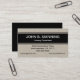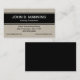 This plain professional business card features a tan background with a black stripe on the top where your name and title appear. Below all your important business information is listed in black on the tan background. Your clients will remember your name and title, as it stands out in white on the black stripe. Copyright henishouseofpaper