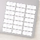 Plain white. 8 inch sheet Guest Name Address Labels - each sheet will allow you to place the name and address for 21 guests- for the 8 inch sheet - each label is approx 2.6 wide by approx 1.15inch tall