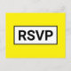 This plain and minimal RSVP postcard design features the message "RSVP" on the front. It also features a customisable RSVP form on the back for the recipient to complete, along with a customisable address that the completed RSVP cards would be mailed to. RSVP cards like this could perhaps be used to find out who will be attending a Christmas party, a wedding shower, a birthday party, a baby shower, or some other celebration.