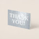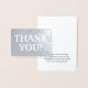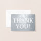 This plain, customisable silver foil thank-you greeting card design features the message "THANK YOU!" on the front, along with a customisable message on the inside. It could be used to show gratitude to somebody who has done something special.