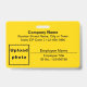 Plain Texts With Employee Photo Rectangle Yellow ID Badge