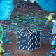 Plane pattern on a navy blue background. Great for baby shower or kids birthday party. Matching invitation, paper plates, napkins, candy tin and banner available.