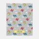 Personalise your child's name or monogram on a playful cartoon pattern of planes, helicopters and clouds on light grey background.