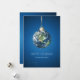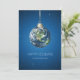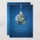 Customisable Holiday card with eco-friendly Christmas theme: planet Earth in space as a Christmas ornament on blue.