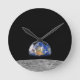 Planet Earth Rising Over Moon Round Clock