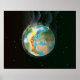 Planet Earth Tectonic Plates. Cartoon Planet Earth with burning tectonic plates releasing soot into the atmosphere.