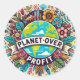 This sticker features a bold, impactful message: "Planet over Profit". It's a powerful statement advocating for environmental sustainability and prioritising the health of our planet over short-term financial gain. The design is simple yet striking, using a clean font and a minimalist aesthetic to emphasize the message. It's perfect for laptops, water bottles, car bumpers, or anywhere you want to express your commitment to a greener future.