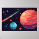 A neon-soaked galaxy full of glowing planets, shooting comets, and an endless star-speckled sky. This electric space scene is bursting with saturated blues, hot reds, and ultraviolet vibes, making it perfect for cosmic explorers, dreamers, or anyone who likes their universe with a little more glow. Whether you're lighting up a wall or a vibe, this poster brings the interstellar energy.