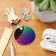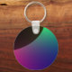 This keychain features a digitally created image that resembles the crescent of a dark planet surrounded by a cosmic aurora of green, blue, purple and pink.