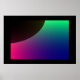 This poster features a digitally created image that resembles the crescent of a dark planet surrounded by a cosmic aurora of green, blue, purple and pink.