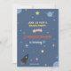 An outer space birthday invitation with planets, stars, shooting stars and rocket in cartoon style on a blue background. You can throw a fun birthday party for a space-loving kid!
