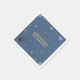 A space themed birthday napkin with planets, stars and a rocket in cartoon style on a blue background. Text is customisable: perfect for a kid's birthday party! It also could be used for any party or dinner!