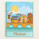 A planner design with bright and attractive colours, the blue sea, clouds and the sun, and orange buildings. It's truly wonderful and gives you joy to start planning your day while feeling happy.
