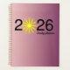 A Minimal Planner for Focused Living. Bold and radiant 2026 daily planner cover featuring large "2026" numerals with a glowing sunburst behind the zero, symbolizing new beginnings and positive energy. Soft pink-to-purple gradient background adds a mystical, boho touch. Perfect for goal setting, mindfulness, and daily organization in the new year.
