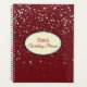 This planner notebook is shown with silver-grey petite stars print on a crimson background. Personalised name for you to customise to yours inside an ivory oval with dual coordinating coloured borders of black and silver-grey on the front. Back same colour and petite stars print. Text is in crimson red. Select your binder spiral on the side, this one is shown with black.