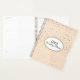 This planner notebook is shown with a petite golden stars print in grey on a Champagne background. Personalised name for you to customise to yours inside a white oval with dual coordinating coloured borders on the front. Back same colour and stars print.