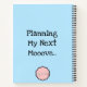 This pastel blue notebook has a happy cartoon cow on it. This cute cow design is hand drawn with markers and coloured pencils. The back cover text "Planning My Next Mooove.." can be customised to anything else you'd like your notebook to say. The background colour is also changeable.