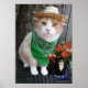 Bubba kitty in a green bandanna and garden hat, in front of a tree, and by a kitty flower pot with some impatiens. You can add text. This poster might be fun for a teacher or anyone who enjoys cats. Hope you buy one. Bubba wants more work.