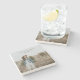 The coasters are gorgeous, a quality feel and heavy weight. They look like a precious archeological find. A rustic stone juxtaposed with a modern floral black and white print. I like the way the print goes slightly imperfect on the cut stone edges giving them a kind-of natural beauty.