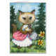 Planting Daffodils Original is 2.5x3.5” Watercolor and ink. Little Kitty is planting a daffodil garden at her beach house. She shades her eyes with a big straw hat – the sun is bright today. Art by Carmen Medlin.