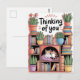 Plants, Cats And Books - Bookish Cat Aesthetic - Cat On A Bookshelf Thinking Of You Cards