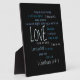 This attractive plaque features lines from 1 Corinthians 13:4 "Love is patient, Love is kind..." randomly placed on the plaque.