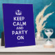 Based on the original Keep Calm and ... poster this cream and blue Keep Calm and Party On Plaque features a custom designed font that matches the original closely.