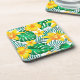 Hard plastic coaster is shown in a lovely multi colour tropical palms print.