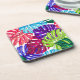 Hard plastic coaster is shown in a lovely multi colour tropical palms print.