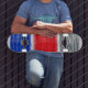 Painting of plastic for 3D printing. Red, silver and blue plastic filament, ABS/PLA coil for 3d printer on white background, isolated