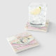 The coasters are gorgeous, a quality feel and heavy weight. They look like a precious archeological find. A rustic stone juxtaposed with a modern floral black and white print. I like the way the print goes slightly imperfect on the cut stone edges giving them a kind-of natural beauty.